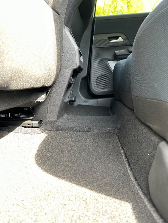 Tu tombes bien, je me posais justement une question. Si ça ne te dérange pas : est-ce qu'il y a des points d'ancrage au sol entre la banquette arrière et les sièges avant ? Et quelle distance y a t il entre le bord de la banquette arrière et le dossier des sièges avant en position de conduite ?