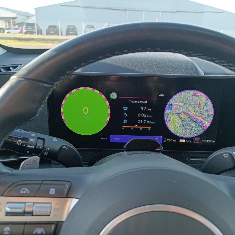Bon, je suis toujours au 1er du 2 avec la caméra de ma Kona… Les problèmes se sont aggravés. Écran info divertissement toujours vert : pas de caméra arrière et maintenant l'écran principal se ferme et se rallume en roulant et parfois, il s'affiche bizarrement (voir photo) et aussi s'affiche avec tous les pictogrammes… Après plusieurs mails à Hyundai " Service Client Hyundai France" et la CC, j'ai enfin été rappelé par la CC. La proposition de la CC : prendre la voiture pour contrôle pendant 48 h (des contrôles ont déjà été réalisés : 3 fois), mais pas avant fin février (mon problème a commencé vers le 15 septembre dernier) et la CC ne veut pas me fournir de véhicule de prêt le temps des réparations (inacceptable pour moi). Après avoir élevé la voix jeudi dernier, le responsable de la CC doit me rappeler. Donc j'attends. La fiabilité du Kona me laisse sceptique et j'ai peur de me retrouver bloqué sur l'autoroute ou pire..... Bon, affaire à suivre. -