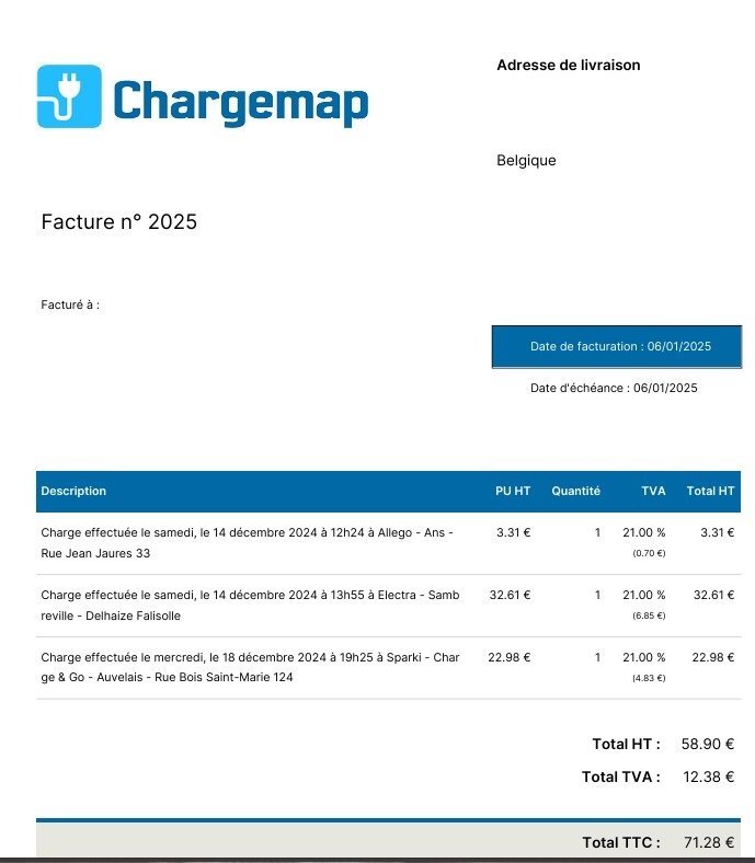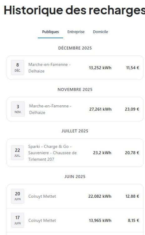 Je suis d'accord avec cette réponse. J'ai une carte Chargemap que j'utilise très peu et effectivement si je viens à faire deux recharges (aussi minimes qu'elles soient) l'application les différencient. Ensuite la facture est éditée en fin de mois et est prélevée le mois suivant. On peut donc vérifier ce qu'on a pris et à quel endroit aussi bien sur le détail des charges que sur la facture finale (envoyée par mail en principe). J'imagine que vous avez bien une carte opérateur car s'a gissant d'un payement directe par CB il me semble qu'il n'y aurait pas de délai.