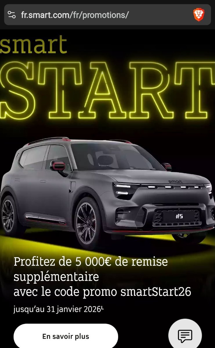 Smart propose une réduction de 5000€ jusqu'au 31 janvier sur l'ensemble de la gamme grâce à un code promo ! - https://fr.smart.com/fr/promotions/