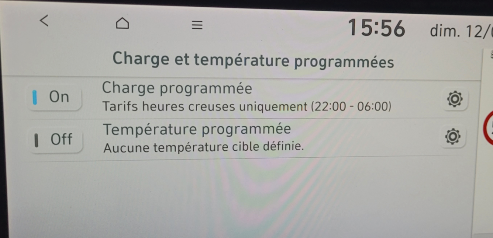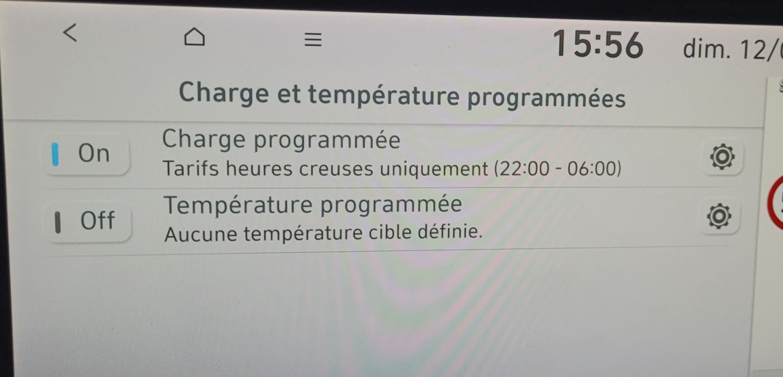 Bonjour à tous j’ai été obligé d’abandonner Bluelink pour My Hyundai. Depuis les recharges de ma Ioniq5 ne sont plus déclenchées aux heures creuses. Pourtant la programmation est bien affichée sur mon tableau de bord (ex dimanche 22:00). Aucune notification sur mon téléphone et lorsque je consulte l’application, je constate que la charge n’a pas démarré ! je n’ai jamais eu ce phénomène svec Bluelink qui affichait “câble branché”, et “charge programmée” je fais une autre tentative ce soir. Merci pour vos commentaires