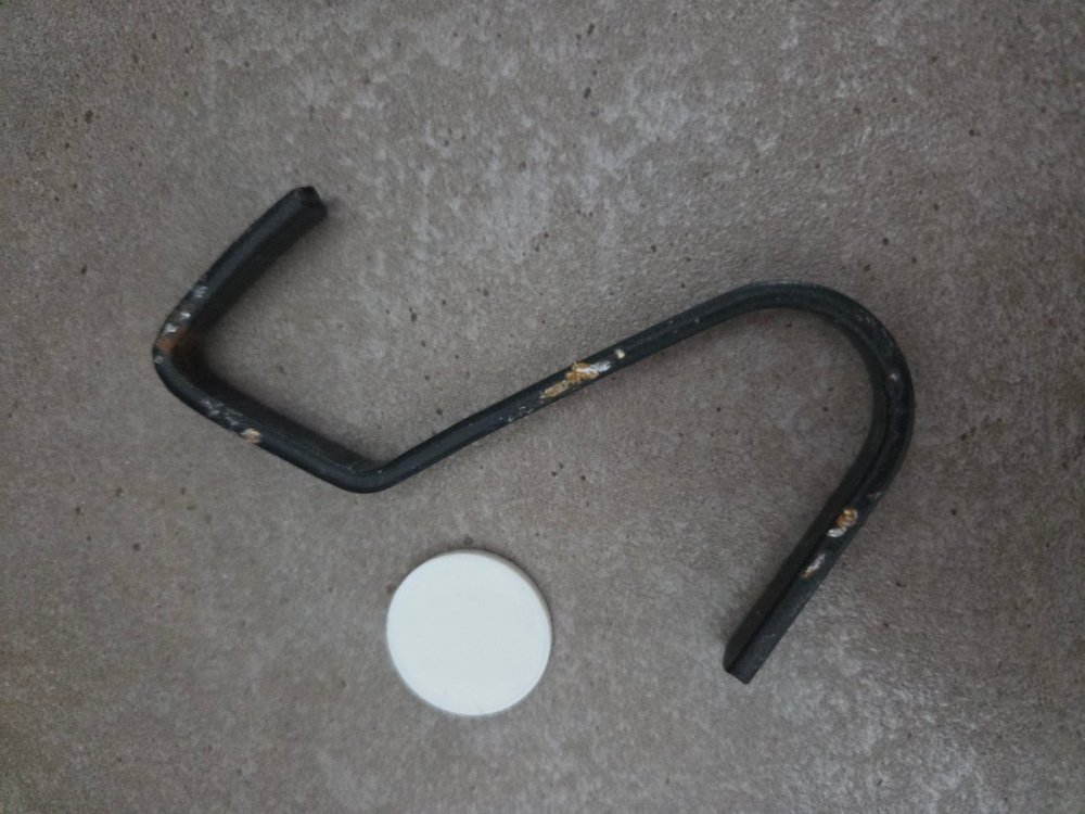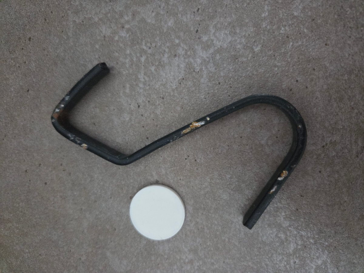Bon, j'ai toujours pas trouvé ce que c'était que ce truc, mais j'en ai un nouveau à vous proposer. 😅 Même chose, trouvé dans la cour où on gare la e208 et la Megane IV, donc ça peut provenir des 2, voire d'ailleurs... C'est en métal peint, et ça ressemble à un support de fixation ??? (à côté c'est un jeton de caddie pour donner l'échelle)