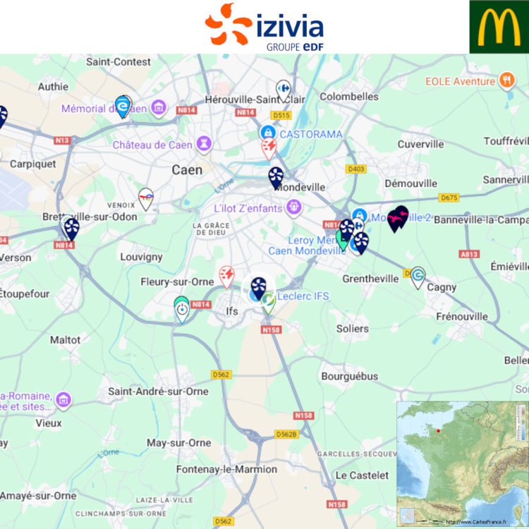 Ouverture d'une station Izivia à Ifs (McDonald's). 2x 150kW CCS Comme d'habitude, retrouvez le lien vers ma carte : https://tinyurl.com/StationsVE Toute l'actu des stations de recharge sur le groupe FB : https://tinyurl.com/GroupeFacebookVE -