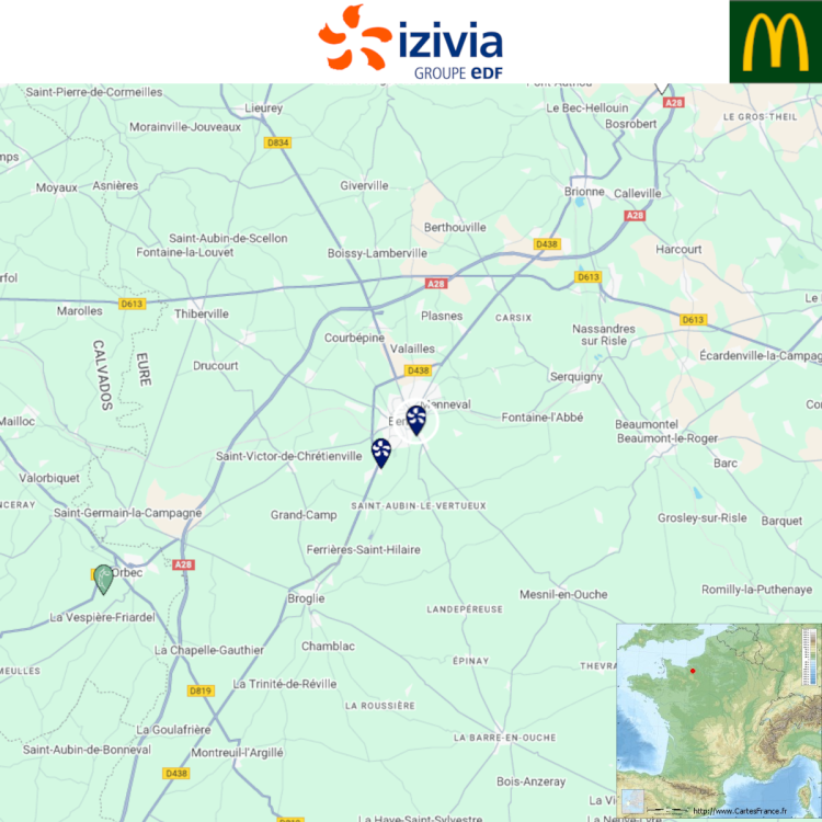 Ouverture d'une station Izivia à Bernay (McDonald's). 4x 150kW CCS Comme d'habitude, retrouvez le lien vers ma carte : https://tinyurl.com/StationsVE Toute l'actu des stations de recharge sur le groupe FB : https://tinyurl.com/GroupeFacebookVE -