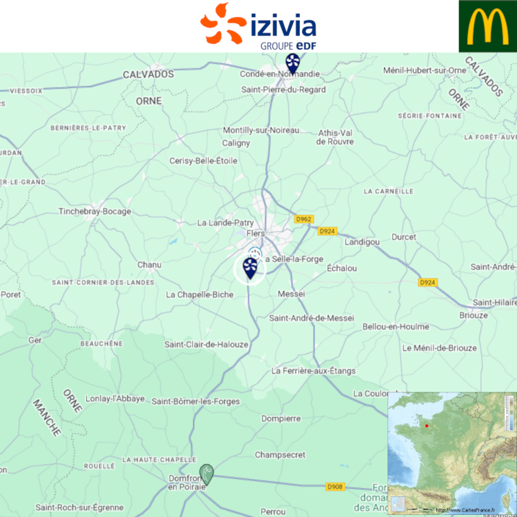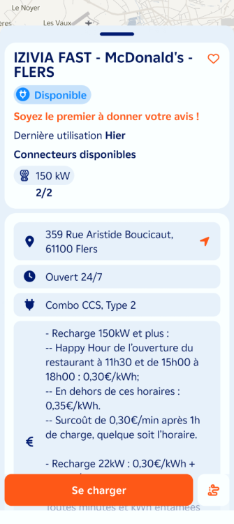 Ouverture d'une station Izivia à Flers (McDonald's). 2x 150kW CCS Comme d'habitude, retrouvez le lien vers ma carte : https://tinyurl.com/StationsVE Toute l'actu des stations de recharge sur le groupe FB : https://tinyurl.com/GroupeFacebookVE -