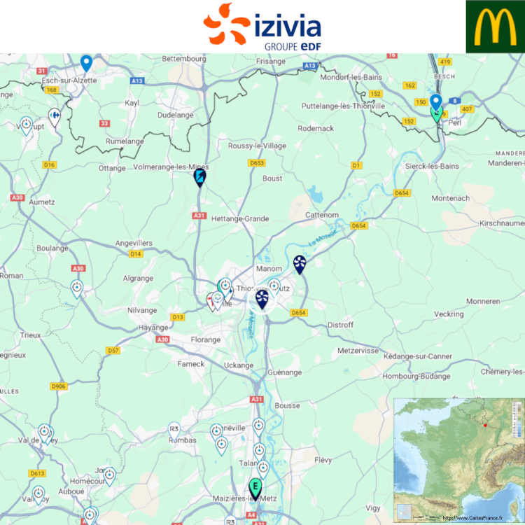 Ouverture d'une station Izivia à Yutz (McDonald's). 2x 150kW CCS Comme d'habitude, retrouvez le lien vers ma carte : https://tinyurl.com/StationsVE Toute l'actu des stations de recharge sur le groupe FB : https://tinyurl.com/GroupeFacebookVE -
