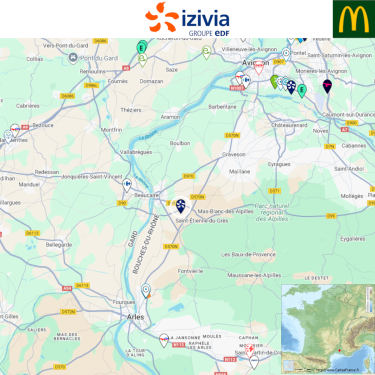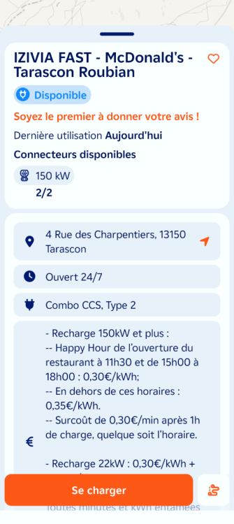 Ouverture d'une station Izivia à Tarascon (McDonald's). 2x 150kW CCS Comme d'habitude, retrouvez le lien vers ma carte : https://tinyurl.com/StationsVE Toute l'actu des stations de recharge sur le groupe FB : https://tinyurl.com/GroupeFacebookVE -