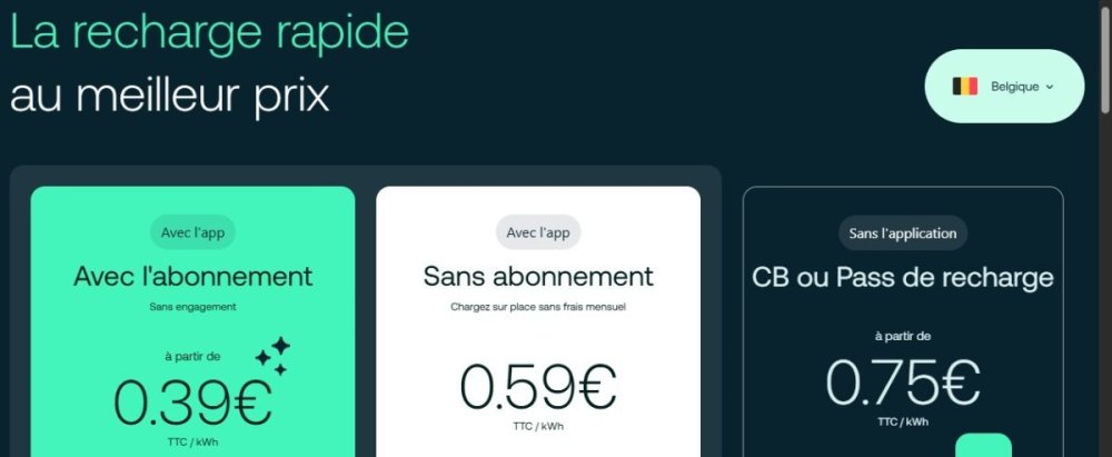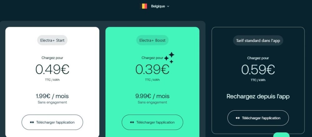 Bonjour, De ce que je vois, c'est bien 0,39€ avec l'abonnement mais on parle de l'abonnement Electra+Boost à 9,99€/mois. Il existe aussi un abonnement Electra+start à 1,99€/mois qui met le kWh à 0,49€. Il faut faire son calcul personnel sur base du nombre de recharges et du total de kWh repris pour voir ce qui est le plus intéressant, il y a quatre prix différents suivant qu'on recharge avec le petit abonnement, le gros, seulement l'application sans abonnement ou en payant par carte bancaire ou via carte d'opérateur. J'ai fait trois recharges sur trois ans chez Electra en payant via carte ChargeMap car je recharge pratiquement toujours de nuit à domicile sur un chargeur 16A bien suffisant à mon usage (récupération de 16km par heures de recharge par temps de gros gel et jusqu'à 24km par heure de charge en été). -