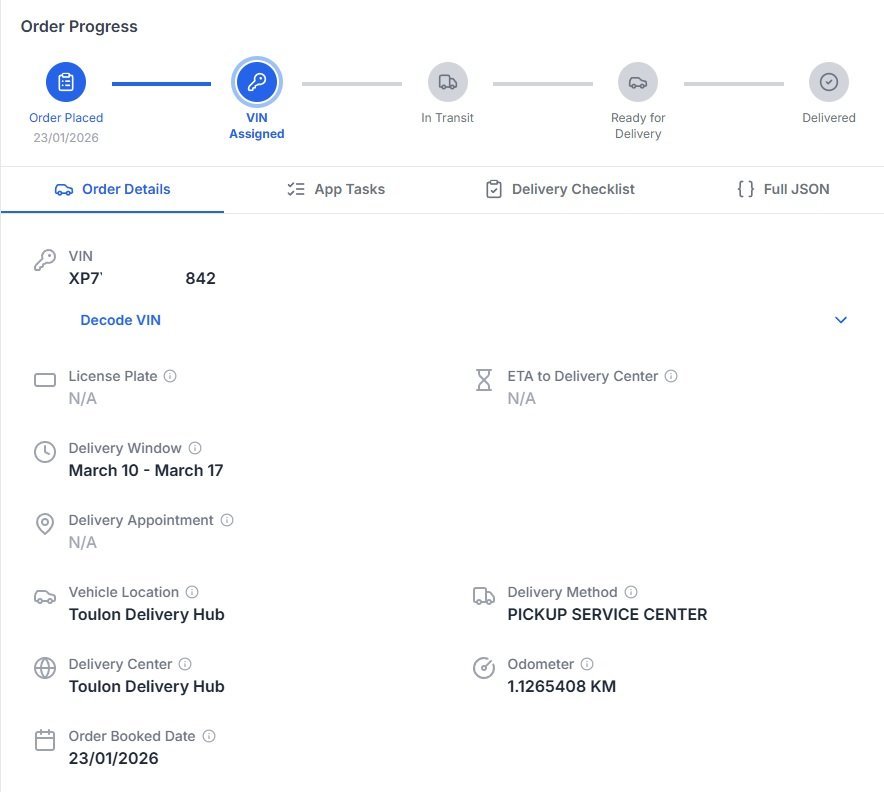 Difficile de savoir a 100% mais très probable. Quand les voitures arrivent au Hub de Creuzwald en France tu as en principe une date de RDV a choisir. Si tu n'as pas encore de date, elle est probablement soit en Allemagne soit sur le train. Quand tu auras la date sur l'application c'est que les DA auront de la visibilité sur la date d'arrivée en SC et donc que le camion qui ramene ta voiture depuis le hub a été plannifié. -