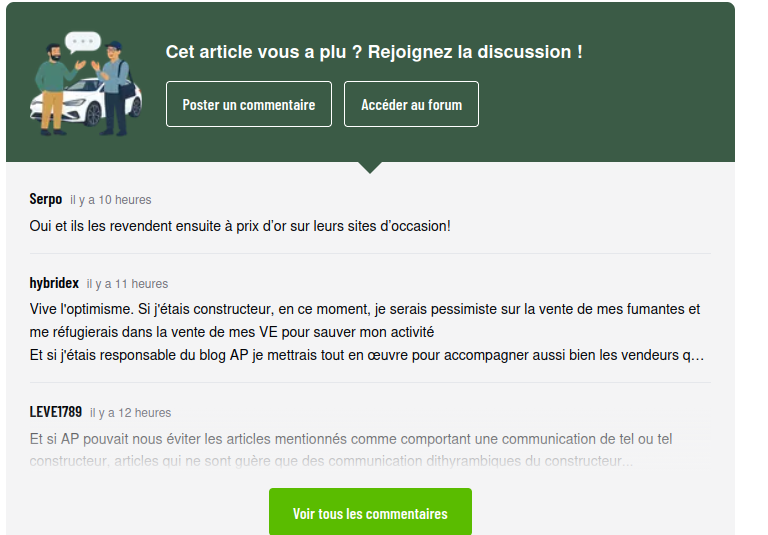 Mystère mystère hier soir j'ai posté un commentaire en réponse au billet "soyons positifs" du bien content sur le blog la suite de mon message expliquait en substance, je n'ai pas gardé la mémoire des termes exacts, qu'AP ferait mieux de ne pas mettre en avant des hybrides à roues de charrette dépassées Mais si on clique sur voir tous les commentaires on obtient ça Mon commentaire et celui de LEVE1789 ont disparu! -