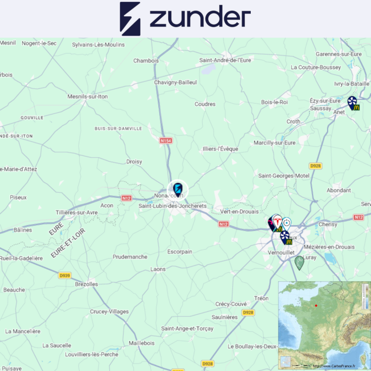Ouverture d'une station Zunder à La Madeleine-de-Nonancourt (N12). 4x 400kW CCS Comme d'habitude, retrouvez le lien vers ma carte : https://tinyurl.com/StationsVE Toute l'actu des stations de recharge sur le groupe FB : https://tinyurl.com/GroupeFacebookVE -