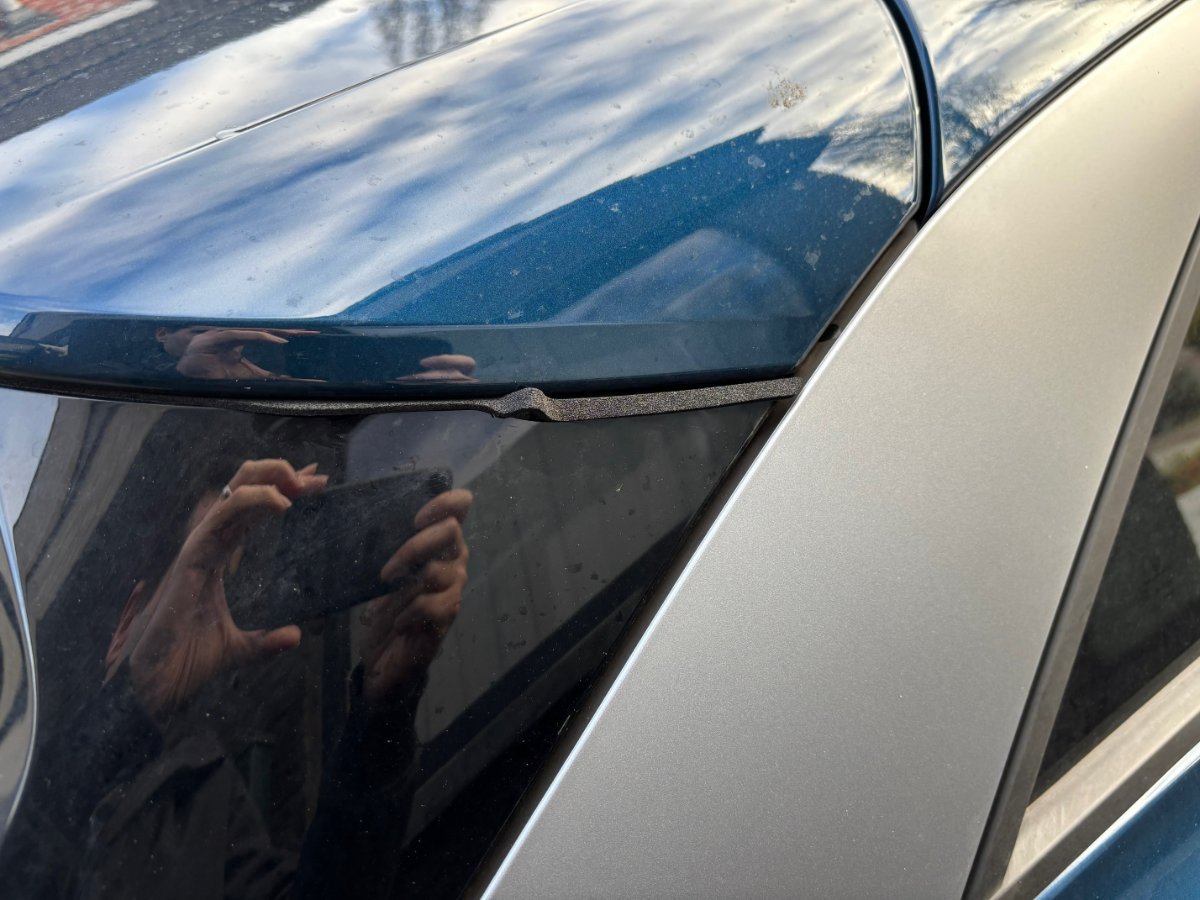 Pas vraiment une panne/bug mais un joint qui est mal positionné au niveau de la vitre arrière. J'ai du mal à croire que je ne l'avais jamais remarqué en plus d'1 an mais d'un autre côté j'ai du mal à croire qu'il ait pu se déloger/décoller tout seul. J'imagine que je vais devoir passer au garage, la voiture est évidemment encore sous garantie.