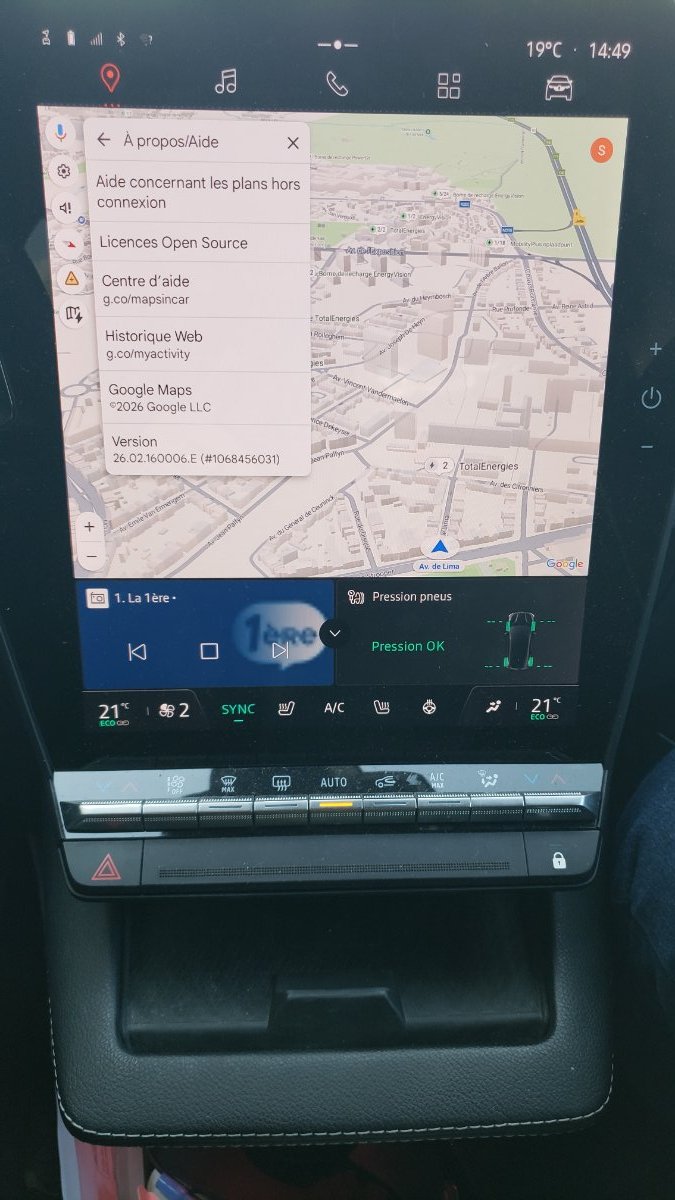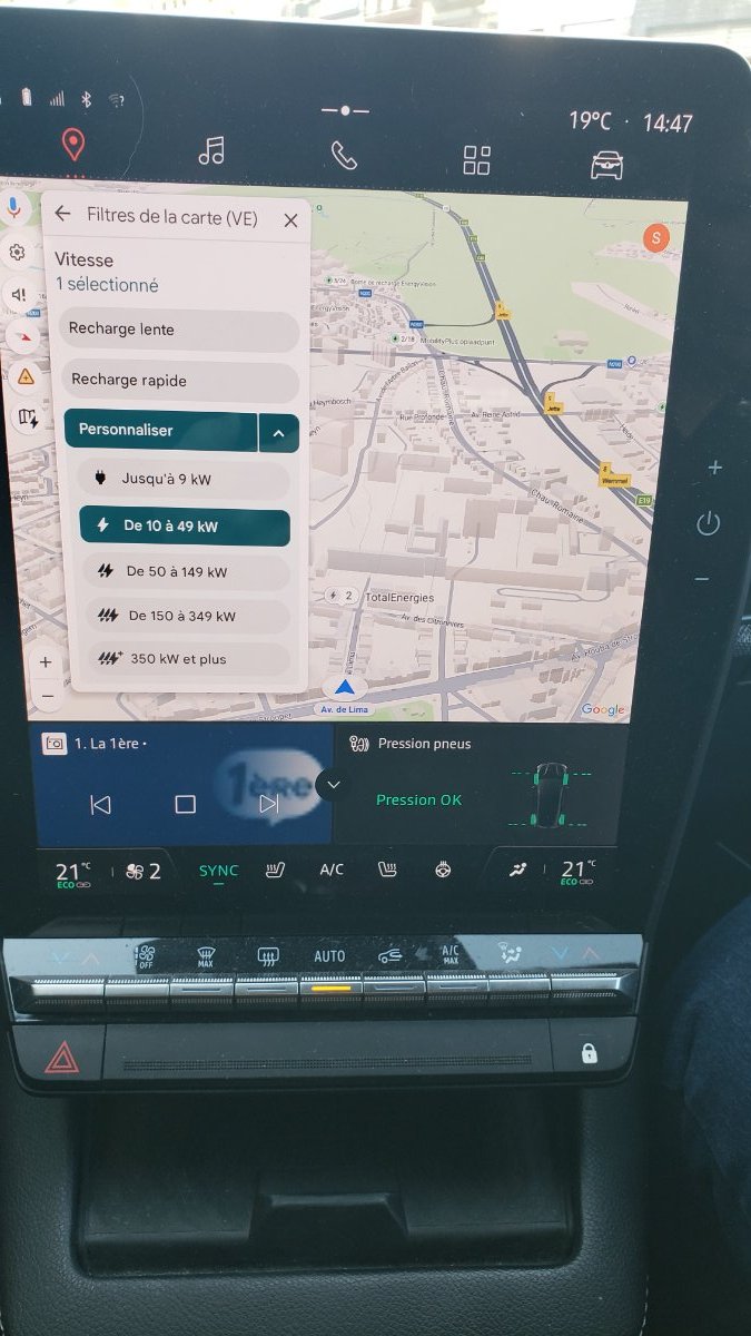 Je l'ai fait lundi après 2 semaines d'absence et un Google Maps qui restait tout noir (mais calculait les itinéraires via la commande vocale ! 😅)... J'ai donc forcé l'arrêt de Maps et redémarré la tablette... Résultat, j'ai maintenant enfin le filtre d'affichage des bornes sur la carte en fonction des puissances (sauf le 22kw...😒) ... Mais toujours pas de màj 2.2.0 moteur électrique et son affichage de la puissance instantanée de la charge... 😢