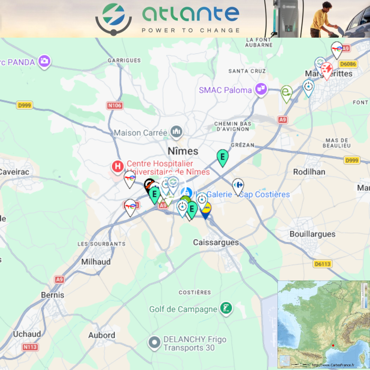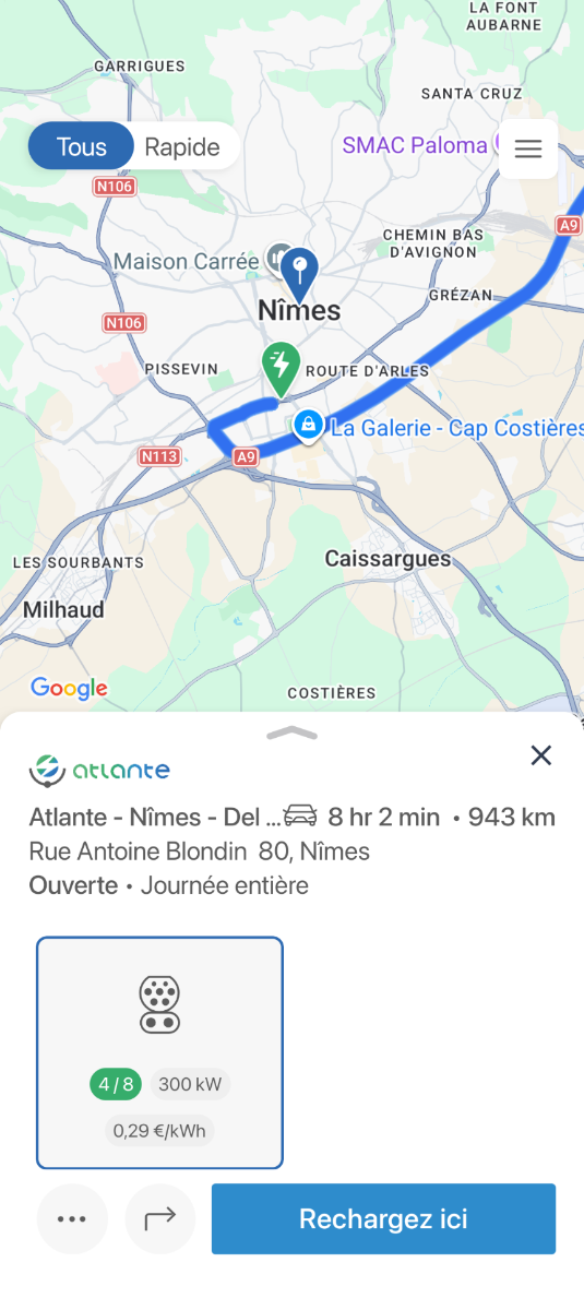 Ouverture d'une station Atlante à Nîmes (Del Arte). 8x 300kW CCS Comme d'habitude, retrouvez le lien vers ma carte : https://tinyurl.com/StationsVE Toute l'actu des stations de recharge sur le groupe FB : https://tinyurl.com/GroupeFacebookVE -