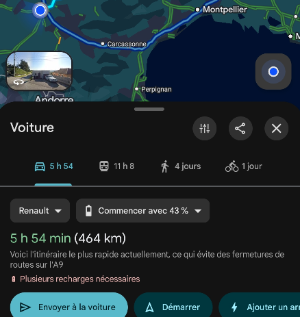 j ai une R5 avec android automotive , en liant mon compte google, ca a modifié mon google maps sur le tel, en rajoutant des infos 'VE' c est pas encor eun vrai planificateur ( mais sur la R5 oui ) , mais deja ca avance un peu . exemple : -