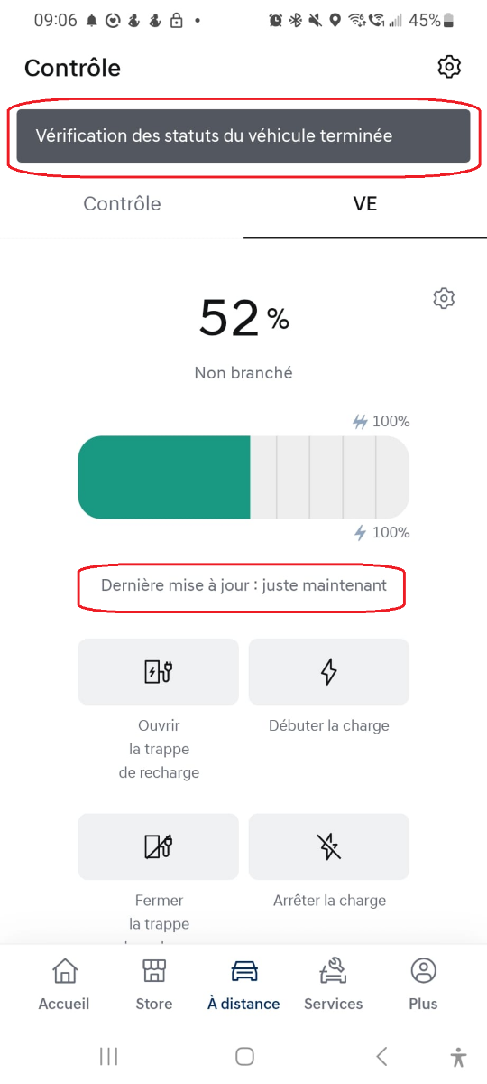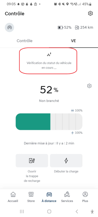 Le système doit se dire que si tu ne prends pas ta voiture le lendemain et bien il n'a pas besoin de la charger - en tout cas c'est comme cela que je le comprend et oui je suis d'accord avec toi on ne lui demande pas son avis mais juste de charger la voiture dans les créneaux définis Es-tu sûr que la voiture n'a pas chargé? le pourcentage batterie n'avait pas évolué? en faisant référence à ton 1er screenshoot de l'appli, on peut voir que la dernière mise à jour des données avait eu lieu 55 minutes plus tôt. Ce n'est pas forcément clair et intuitif, mais très souvent les données ne sont pas à jour et il faut forcer la MAJ de ces dites données en tirant la fenêtre vers le bas et être sûr que cela est ok. Nous sommes plusieurs sur le forum à avoir été "bernés" par l'appli en pensant que les données étaient à jour mais en regardant ce détail et bien la dernière MAJ pouvait avoir eu lieu plusieurs heures avant. Tirer la fenêtre vers le bas et obtenir le message de vérification du véhicule en cours. Confirmer la MAJ des données : vérification terminée & dernière MAJ : juste maintenant.