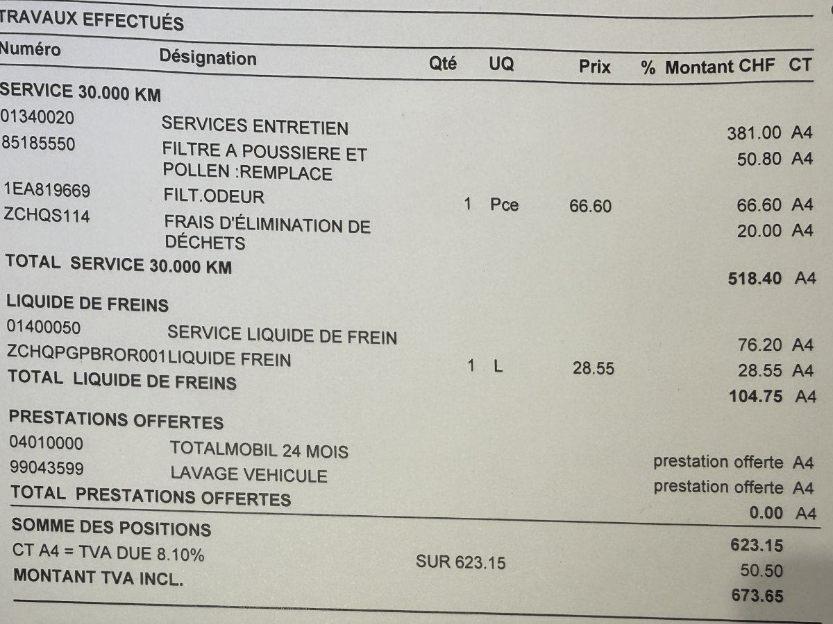 Salut à vous Alors pour vous en france c'est encore un tarif raisonable par rapport à la Suisse pour le même travail. Je sors du service des 2ans sur mon Enyaq RS (30000km) et là le prix de 673frs est juste....