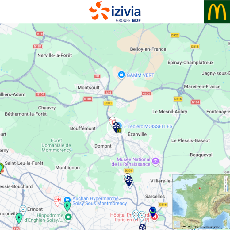 Ouverture d'une station Izivia à Moisselles (McDonald's). 2x 150kW CCS Comme d'habitude, retrouvez le lien vers ma carte : https://tinyurl.com/StationsVE Toute l'actu des stations de recharge sur le groupe FB : https://tinyurl.com/GroupeFacebookVE -