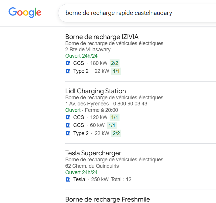 Un peu cliché ,non ? Au hasard ,une petite ville : Et dans cette petite ville ,on a env. 25 bornes 22 kW. Dans toutes les petites communes on a au moins 2 bornes 22 kW 😀 On peut dire qu'il y a beaucoup plus de bornes ,que de pompes essence . Et les rares hyper , pas équipés rentrent dans la danse .... -
