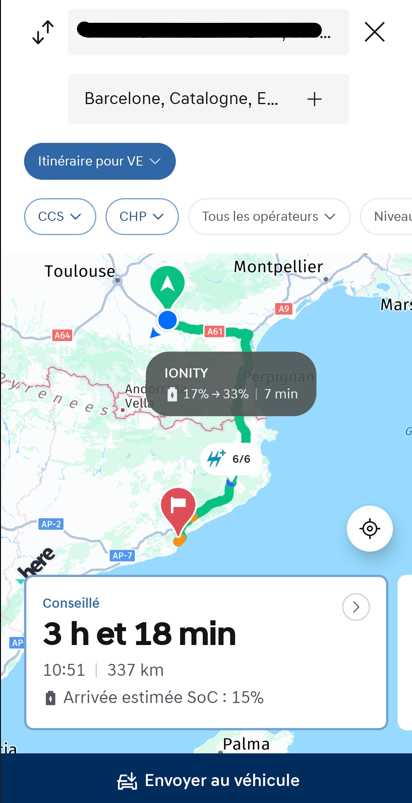 Oui ,c'est quand meme très fonctionnel , ex je suis à 70 % ,une simple recherche : Avec niveaux charge station et destination à 15 %
