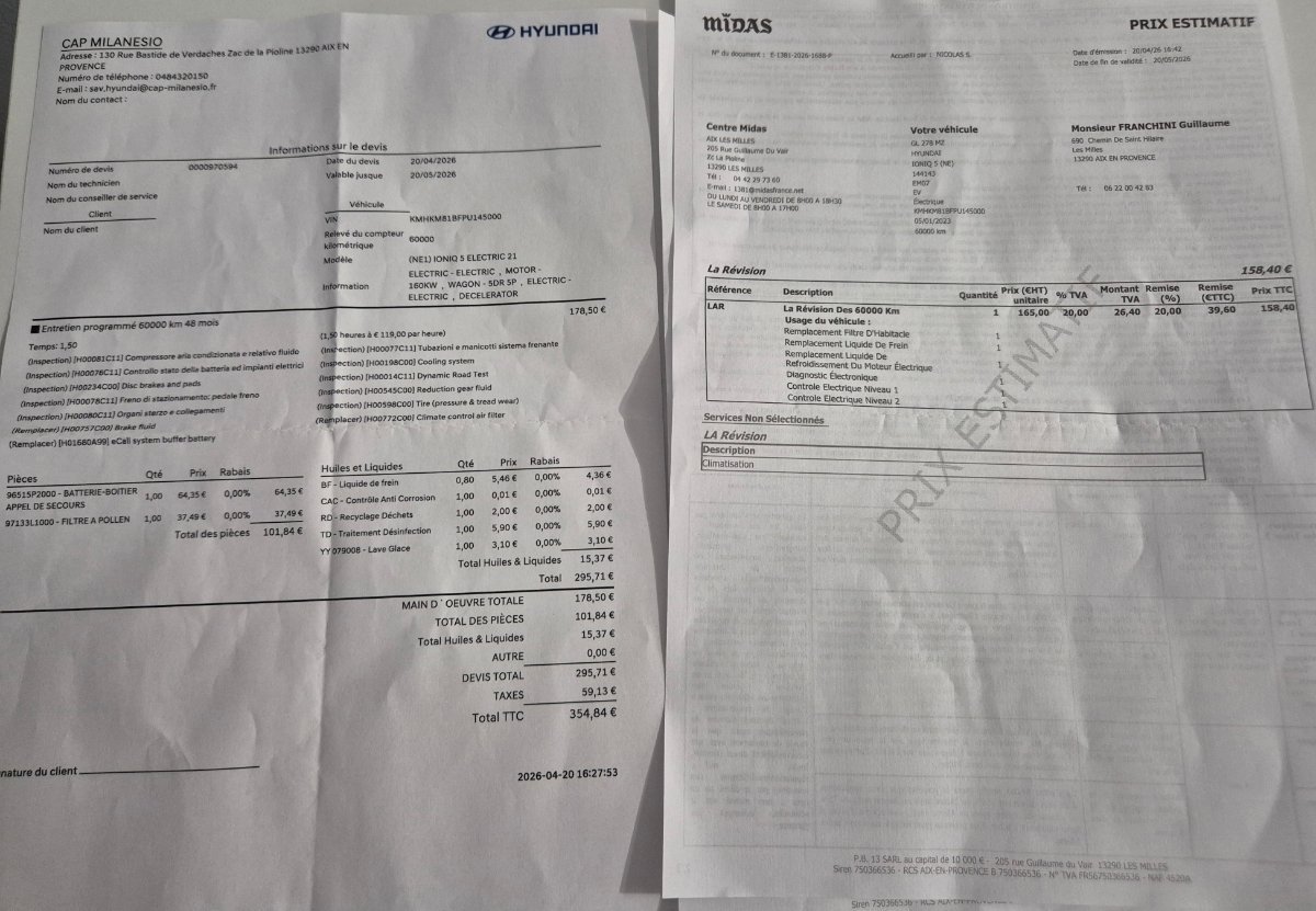 Voilà je suis chez mon CV et j'en ai profité pour aller voir midas. j'ai les 2 devis : -Une différence de prix de 200e - hyundai ne change pas le liquide de refroidissement moteur (alors que midas oui) -Cette pile e-call à +65e alors que midas n'en dit rien. Je ne sais pas qui je vais choisir...