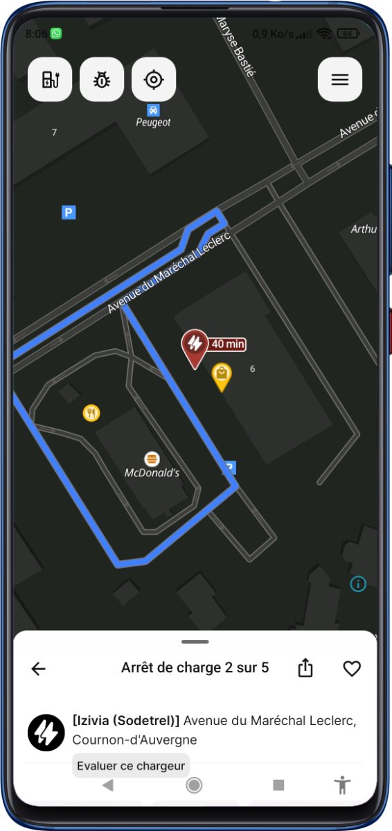 A Better Route Planner (ABRP) : application mobile