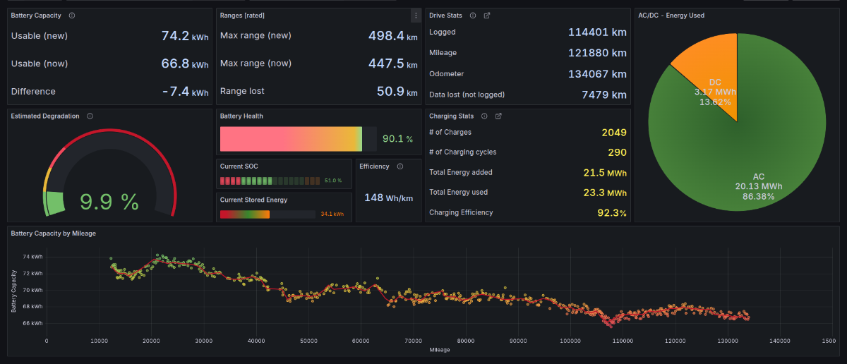 Pour en revenir au sujet initial, après presque 3 ans d'utilisation et 69 899 km, mon SOH est de 92.99%.