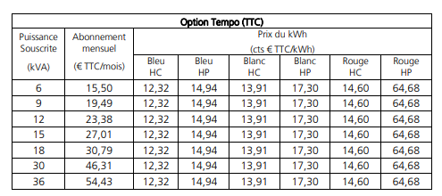 Pour le coup, Tempo d'EDF est plus intéressant niveau tarif mais il faut pouvoir gérer les 22 jours rouges (en heures pleines) -