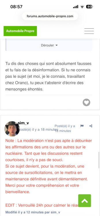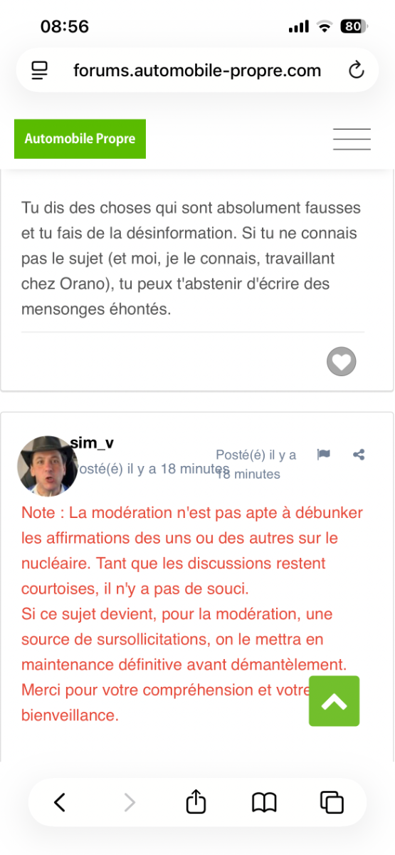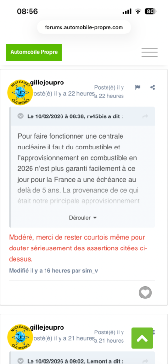 Note : La modération n'est pas apte à débunker les affirmations des uns ou des autres sur le nucléaire. Tant que les discussions restent courtoises, il n'y a pas de souci. Si ce sujet devient, pour la modération, une source de sursollicitations, on le mettra en maintenance définitive avant démantèlement. Merci pour votre compréhension et votre bienveillance. EDIT : Verrouillé 24h pour calmer le réacteur. -