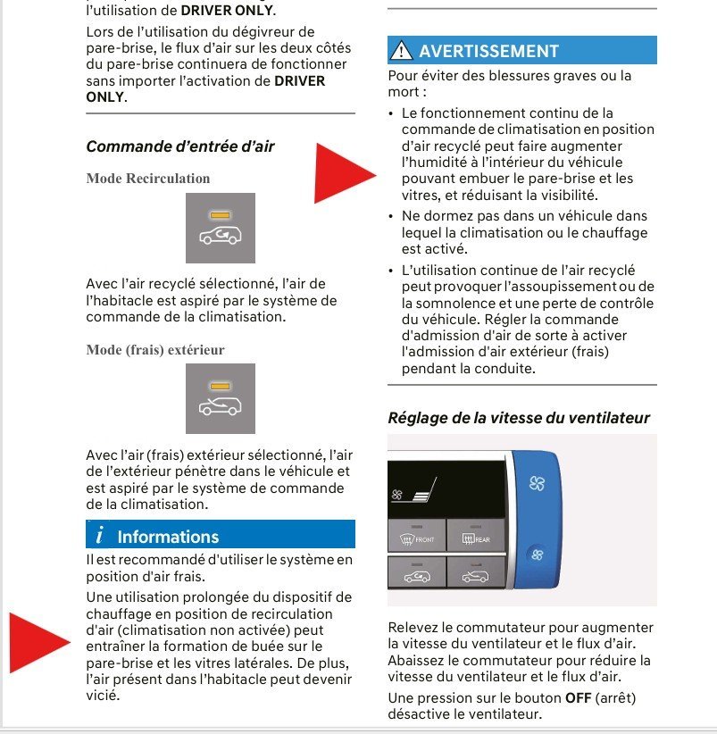Peut être la cause de ton problème ! En ce moment beaucoup d'humidité due notamment aux grandes amplitudes de température . Si par exemple ,tu rentres dans ton VE avec vêtements humides et ne mets pas de clim ,tu peux avoir un taux humidité beaucoup trop important ..... Et peut être aussi ,voir avec le réglage clim automatique : Je me sers du réglage clim auto ,et jamais eu de problème de buée avec Kona 2021-2022 : Et bien sur ne pas utiliser constamment en position air recyclé : Meme si tu n'utilise pas constamment la clim , de temps en temps devrait éviter ce problème . Sauf bien sur si infiltration eau .....