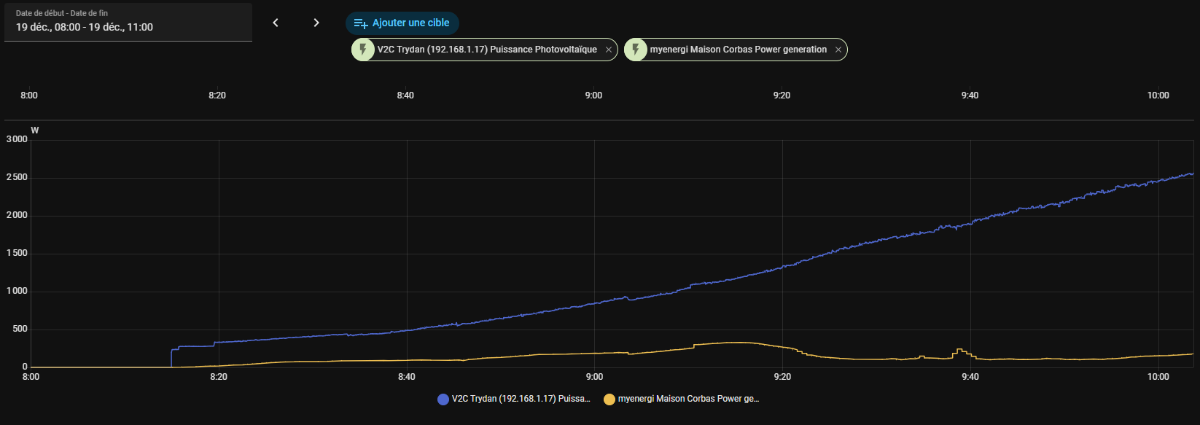 Bon mon installateur a changer le boitier de mesure hier et l'a mis coté tableau electrique et bien sur cela n'a rien changé: Ils m'ont raconté leur discussion avec les techniciens V2C qui sont resté super vague en expliquant qu'il y a des tas de choses calculés par la borne etc... Pourtant on est d'accord avec mon installateur c'est un fonctionnement simple dont visiblement ils sont incapables. On s'est mis d'accord avec l'installateur que si le changement de module change rien (et c'est le cas) la seule solution pour avoir un delestage et un surplus qui fonctionne c'est de mettre des shelly parcque je doute qu'ils voudront me degager cette bouse pour mettre une vrai borne qui fonctionne correctement. A coté de ça la puissance de charge est toujours capé a 7.1 kW pour une raison incomprehensible.