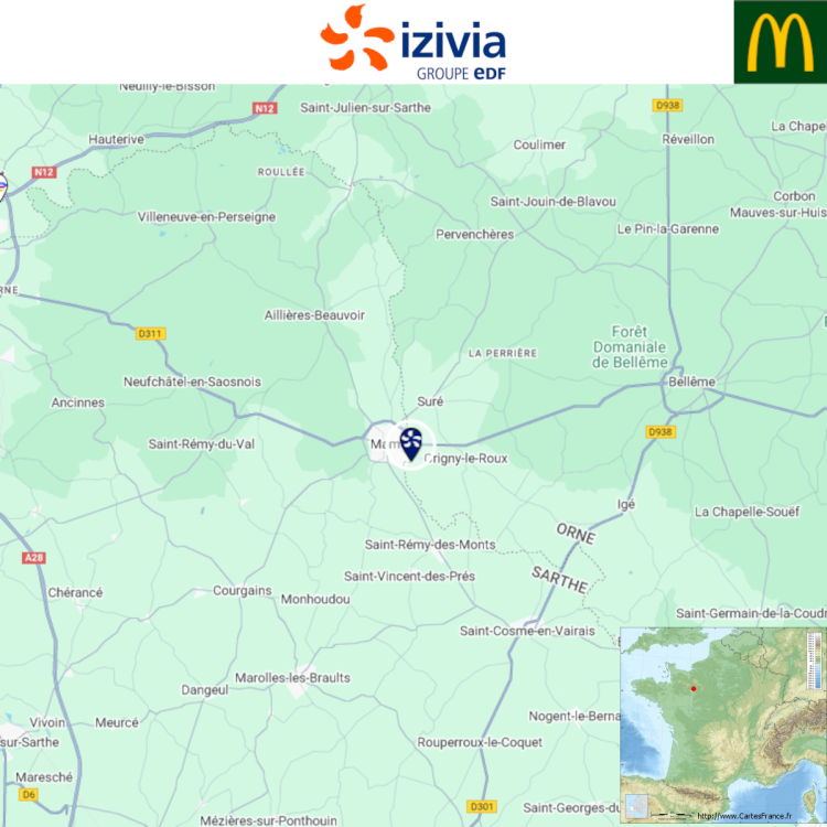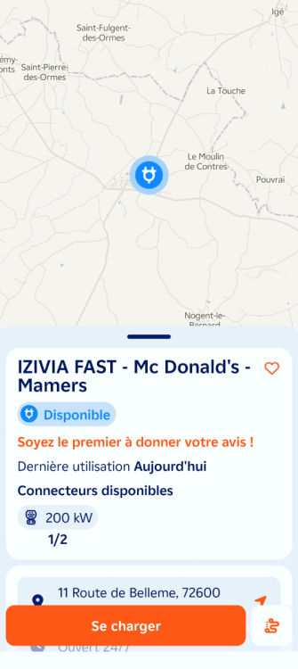 5. Ouverture d'une station Izivia à Mamers (McDonald's). 2x 200kW CCS Comme d'habitude, retrouvez le lien vers ma carte : https://tinyurl.com/StationsVE Toute l'actu des stations de recharge sur le groupe FB : https://tinyurl.com/GroupeFacebookVE