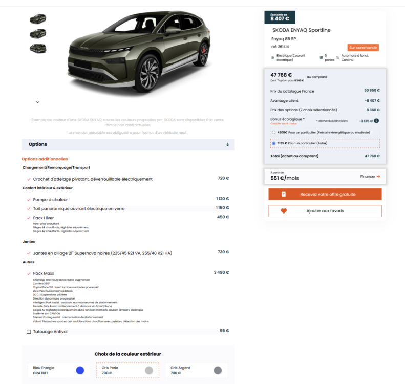 17. Il faut que tu cliques sur le petit "i" du bonus puis cocher 3135 euros avant de rajouter les options. Le truc est un peu beugé, si te rajoutes les options d'abord, il enleve (à tord) completement la ligne du bonus ; il ne gere pas tres bien la limite des 47000, qui est hors options. Au fur et à mesure que tu rajoutes les options, il y a plusieurs moments où il faut recocher le bonus 3135 euros.