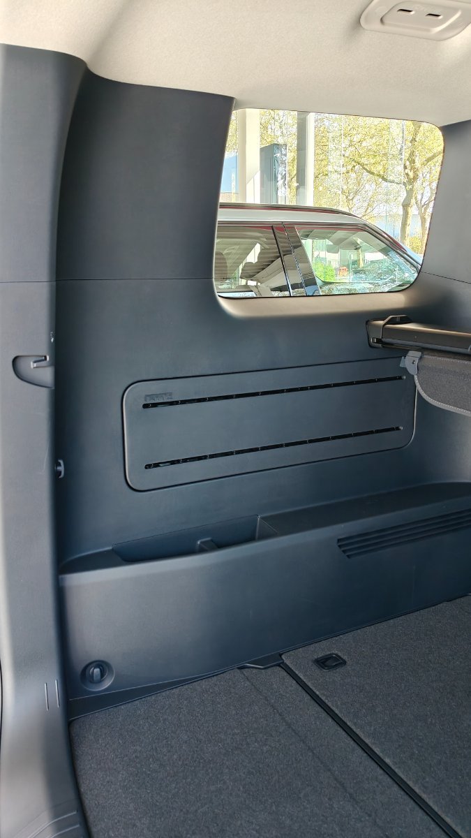 Mon essai a été assez concluant. J'ai juste subi le 100% de batterie qui a inhibé la régénération, ce qui l'a permis de tester le freinage classique qui a moins confortable (on ressent plus le poids du véhicule je trouve). La position de conduite donne bien le sentiment de dominer son environnement. J'ai néanmoins fini par abaisser mon siège car l'accoudoir sur la portière de gauche est assez bas et il devient difficile d'y reposer le bras. Sur le modèle en Élite "full option" belge (pack tech, pack luxueux Seats, les jantes "carrées", la couleur intérieure "human light grey"), l'intérieur clair est bien lumineux. Ma femme était d'ailleurs perturbée par tant d'espace: l'effet pervers est qu'on perd l'effet cocon d'un habitacle plus serré. J'ai pris des photos d'un exemplaire en concession dont l'intérieur est gris foncé assez Unis avec les sièges as hoc. Ton bleuté mais en réel assez peu gênant. Ce gris foncé rend un effet plus élégant et diminue l'effet d'intérieur géant, ça nous plait mieux. Le gris clair des sièges du modèle essayé vite aussi vers un gris-bleu. Je ne comprends pas pourquoi le choix de couleurs n'est pas laissé (très sympa Cognac vu sur youtube par exemple). J'ai mesuré l'entraxe entre le point d'ancrage isofix gauche du siège de droite et le droit du siège de gauche: 59 cm. Pour comparaison, c'est 39 cm dans le Niro EV, et 60-61 cm dans le Peugeot 5008 2021. Un réhausseur de glisse donc sans forcer entre un siège auto et un autre réhausseur fixés. La niche sous le siège conducteur est assez profonde, mais la trappe latérale (qu'on peut ouvrir une fois la portière ouverte) est de qualité très basique, pas anticipée pour usage intensif. J'y aurais bien mis le câble. Au niveau manœuvres, je me suis senti en confiance, facilité par la cam 360 👌 La clef actuelle est plus grande et plus légère, un peu trop "plastoc" à mon goût, même si l'aspect pierre brute est aussi anti griffe. Le pourtour étant en plastique, l'effet alu ne devrait pas durer. Voilà, nous n'avons pas encore signé. Madame est mitigée sur le look (pas moi) et impressionnée par l'effet de taille... C'est juste 5 cm plus long que notre 5008 (le nouveau 5008 étant plus long encore!).