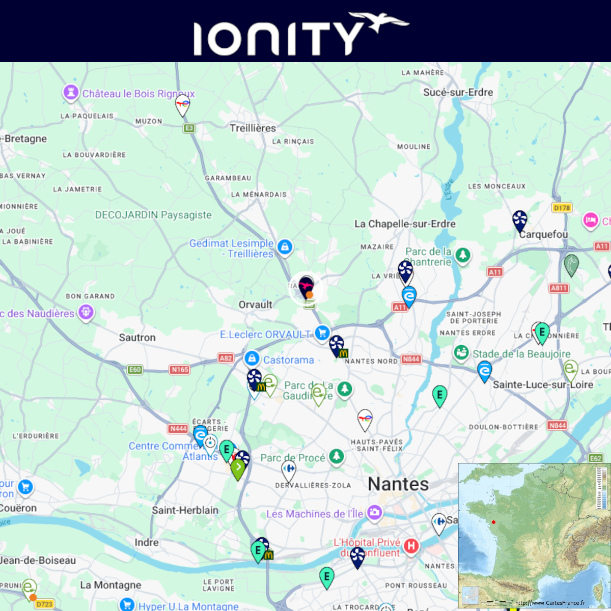 Construction d'une station Ionity à Treillières (Grand Frais). Comme d'habitude, retrouvez le lien vers ma carte : https://tinyurl.com/StationsVE Toute l'actu des stations de recharge sur le groupe FB : https://tinyurl.com/GroupeFacebookVE -