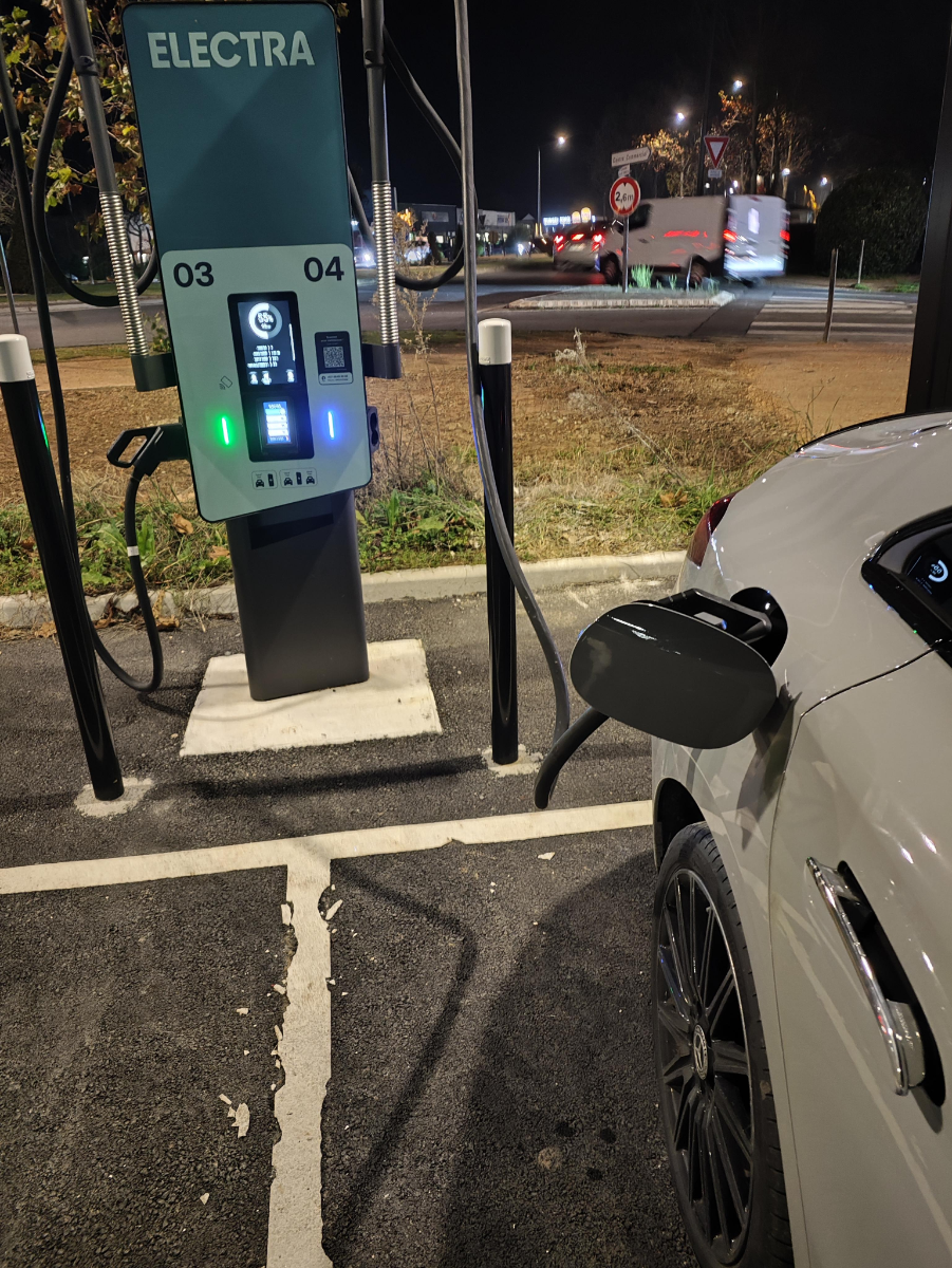 pour rassurer les sceptiques dont je faisais parti, on peut trouver des bornes de petites puissances compatibles 800V. Ci dessous une charge sur de nouvelles bornes Electra à 50kw Les bornes 800V ne sont donc pas uniquement dédiées à la haute puissance -