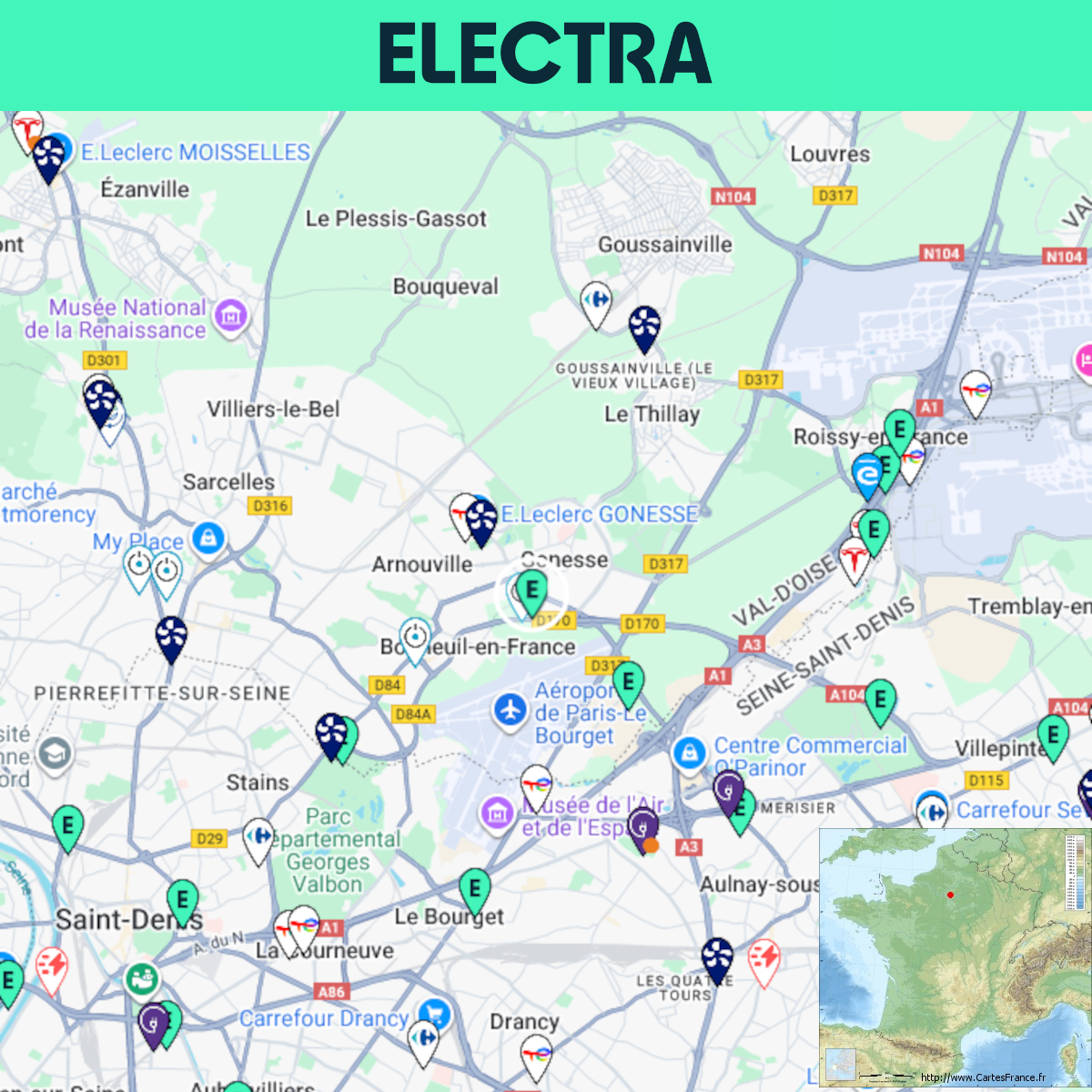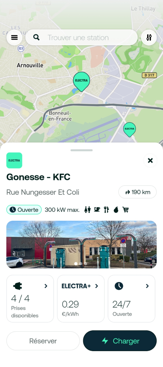 Ouverture d'une station Electra à Gonesse (KFC). 4x 300kW CCS Comme d'habitude, retrouvez le lien vers ma carte : https://tinyurl.com/StationsVE Toute l'actu des stations de recharge sur le groupe FB : https://tinyurl.com/GroupeFacebookVE -