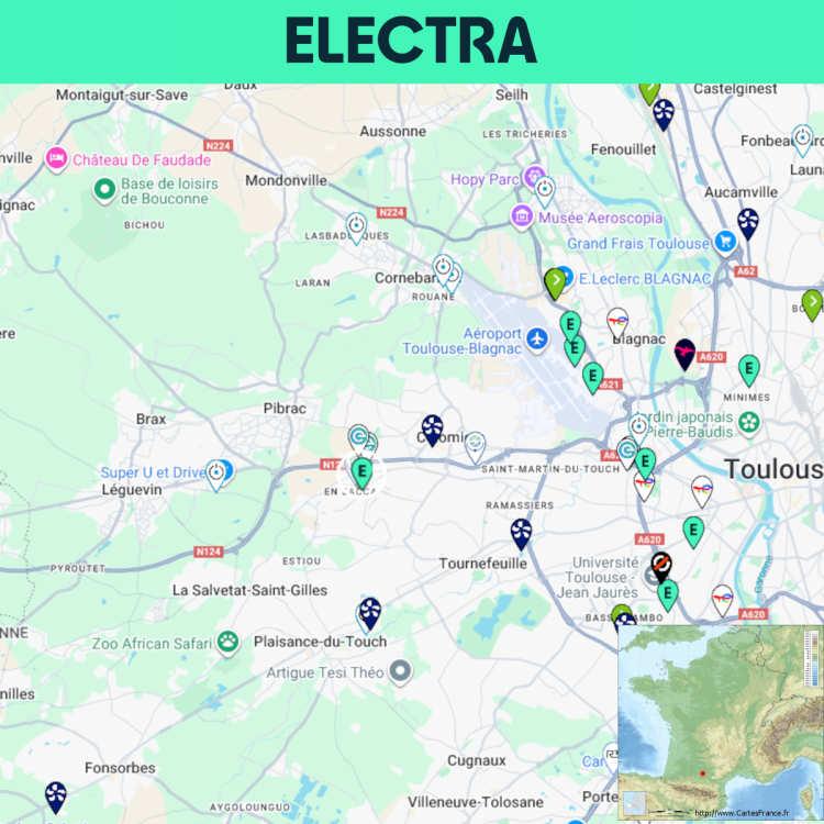 Ouverture d'une station Electra à Toulouse Colomiers (KFC). 6x 300kW CCS Comme d'habitude, retrouvez le lien vers ma carte : https://tinyurl.com/StationsVE Toute l'actu des stations de recharge sur le groupe FB : https://tinyurl.com/GroupeFacebookVE -