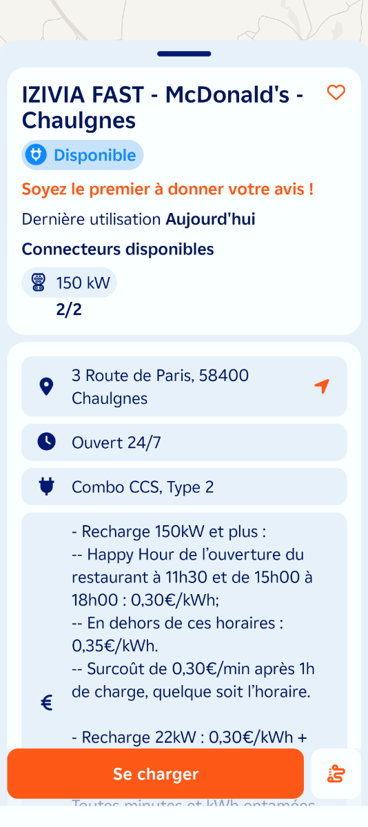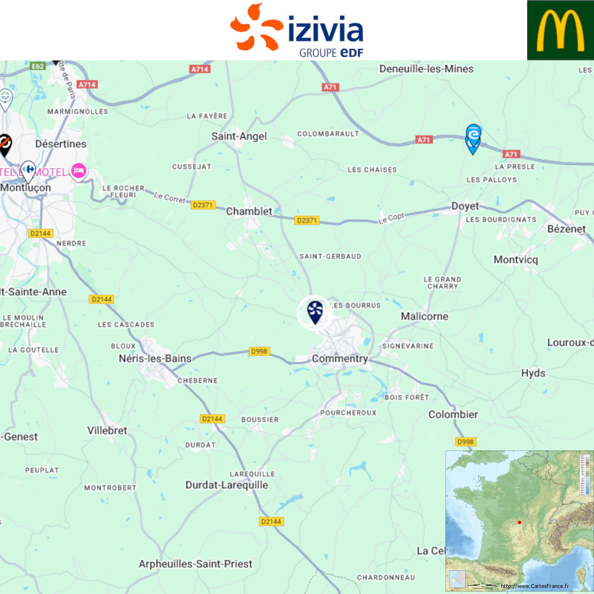 Ouverture d'une station Izivia à Chaulgnes (McDonald's). 2x 150kW CCS Comme d'habitude, retrouvez le lien vers ma carte : https://tinyurl.com/StationsVE Toute l'actu des stations de recharge sur le groupe FB : https://tinyurl.com/GroupeFacebookVE -