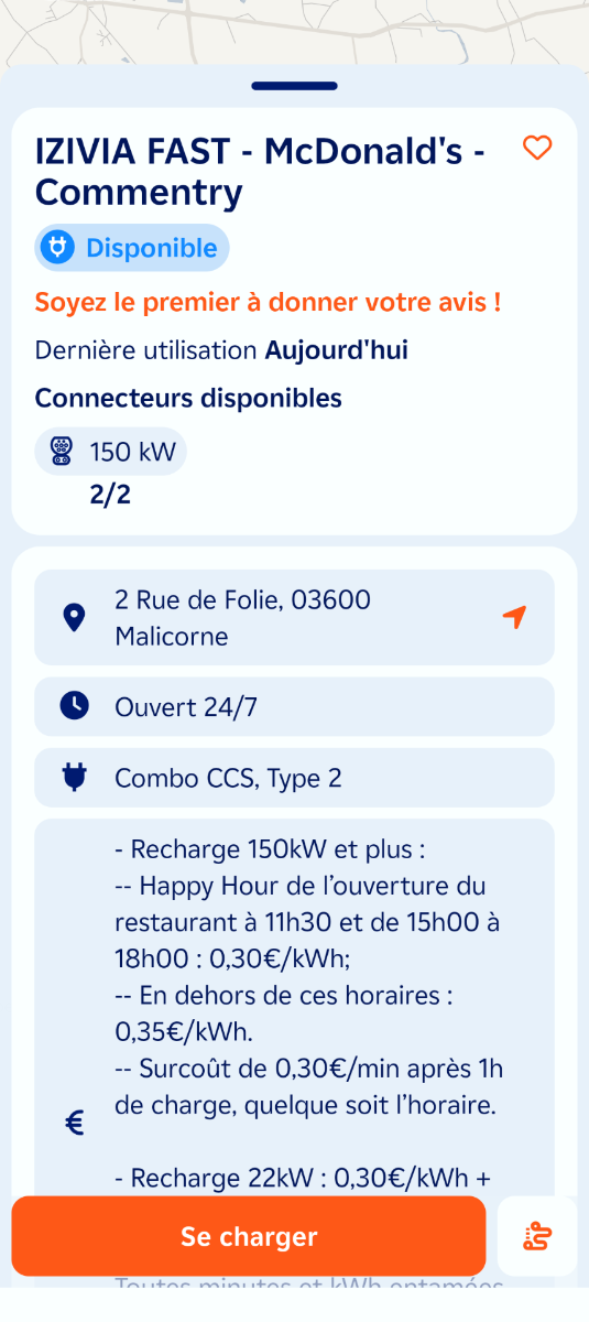 Electroverse qui était à 0,30€/kWh à tout heure est passé à la même tarification que Izivia : 0,30€ aux heures dites "happy hours" sinon 0,35€ -