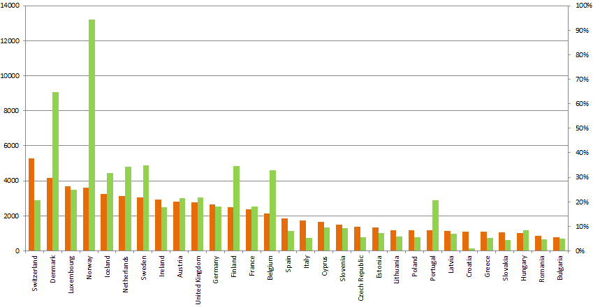 En orange les salaires, en vert le taux de vente neuve BEV. Je laisse à chacun voir si j'ai "faux sur toute la ligne".