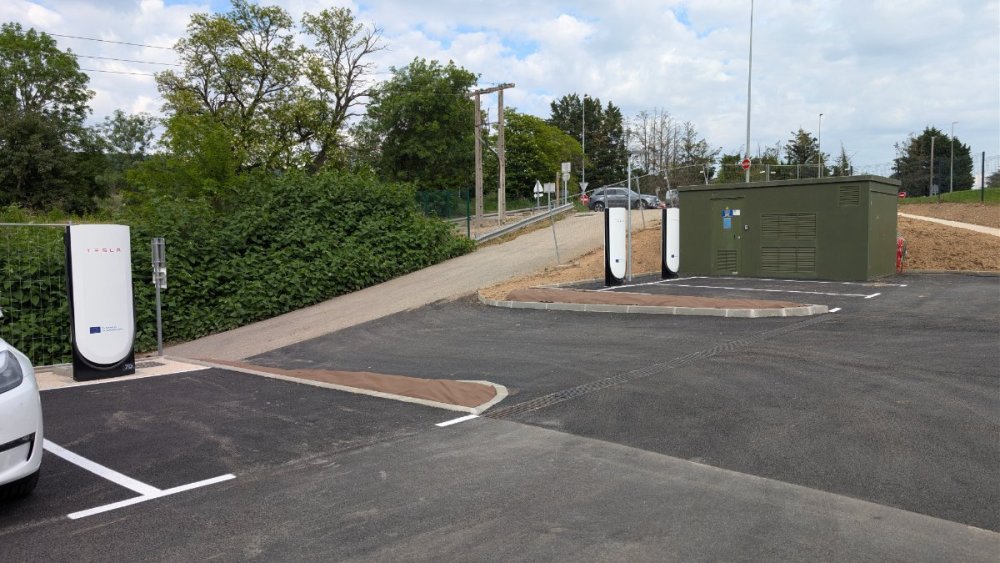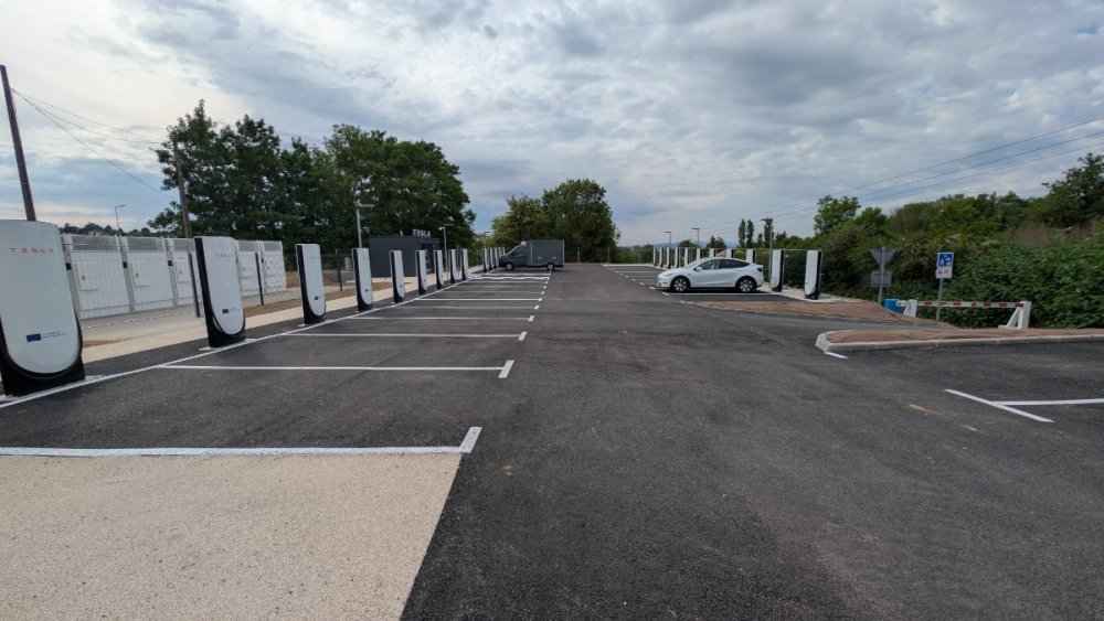 Le deuxième superchargeur de Dardilly est ouvert, j'ai pu y recharger malgré son absence sur la carte dans la voiture. 28 bornes en V4. Le lounge était fermé alors que les distributeurs de friandises (et glaces !) sont remplis. À noter la présence d'un distributeur de sacs pour nos amis à quatre pattes ainsi que de nombreuses poubelles. Si ça peut aider à maintenir le site propre... L'entrée risque d'être coton pour tourner et se croiser, c'est pas ultra large et il y a une belle déclivité. Surprise au niveau du prix, rien ne s'affiche dans la voiture durant la recharge... Quelques clichés :