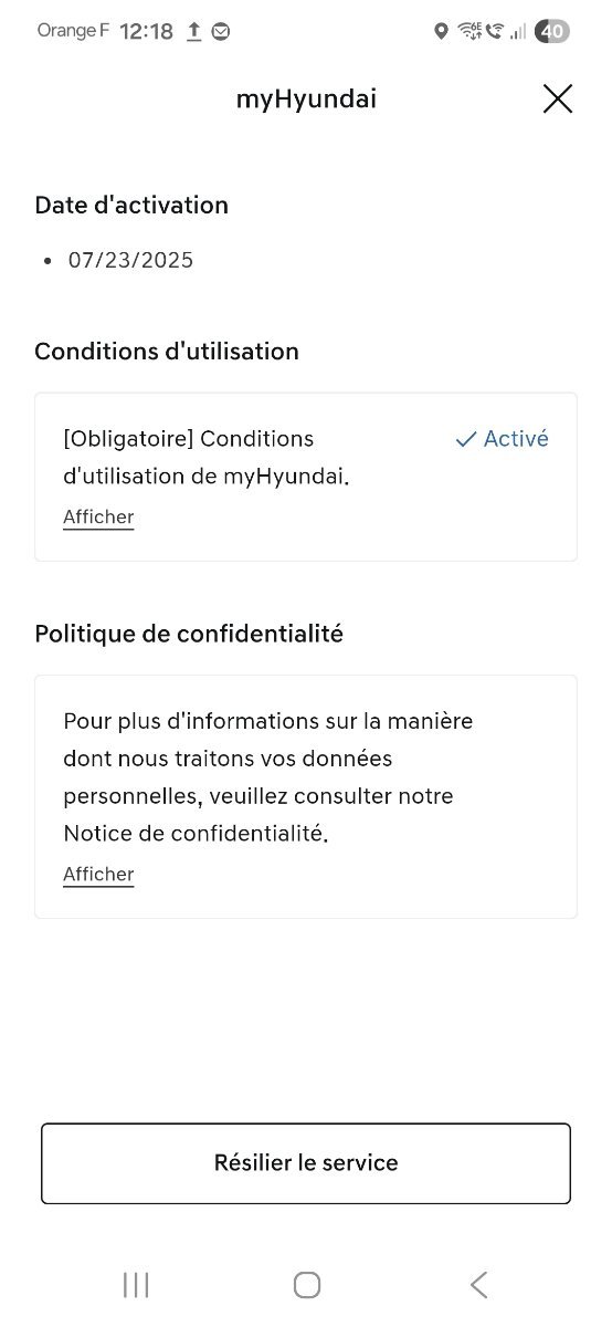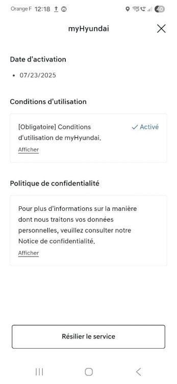 Déjà ,le préalable quand on vend un véhicule ,c'est de le faire avec l'application pour résilier tous les services : Vers paramètres , centre de confidentialité ,accès page services : Ne pas oublier plug & play .... J'ai fait comme çà ,quand j'ai vendu mon Kona et nickel ,pas besoin d'appeler ,pour le nouveau propriétaire ,qui a juste créer son compte .....