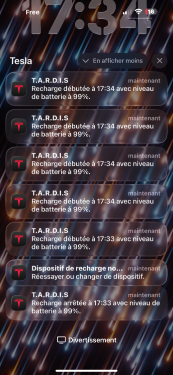 Certe oui je pourrais changer de chargeur ou charger un certain temps avec le cro mais ma voiture est sous garantie jusqu’en décembre 2026, je l’ai acheté d’occasion mais c’est le devoir de tesla de me fournir un véhicule qui marche du chargeur jusqu’au poignée de porte et non à moi d’acheter un chargeur X € pour compenser leurs incompétences Tiens je tombe bien le bug s’énerve 😂🥳 -