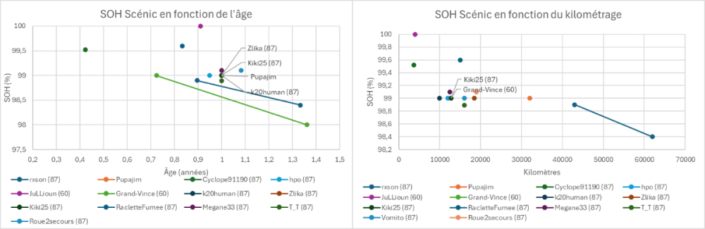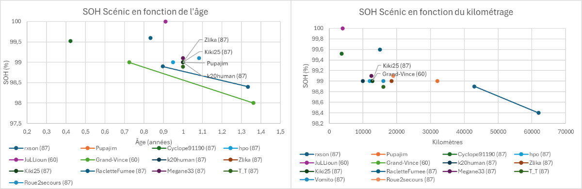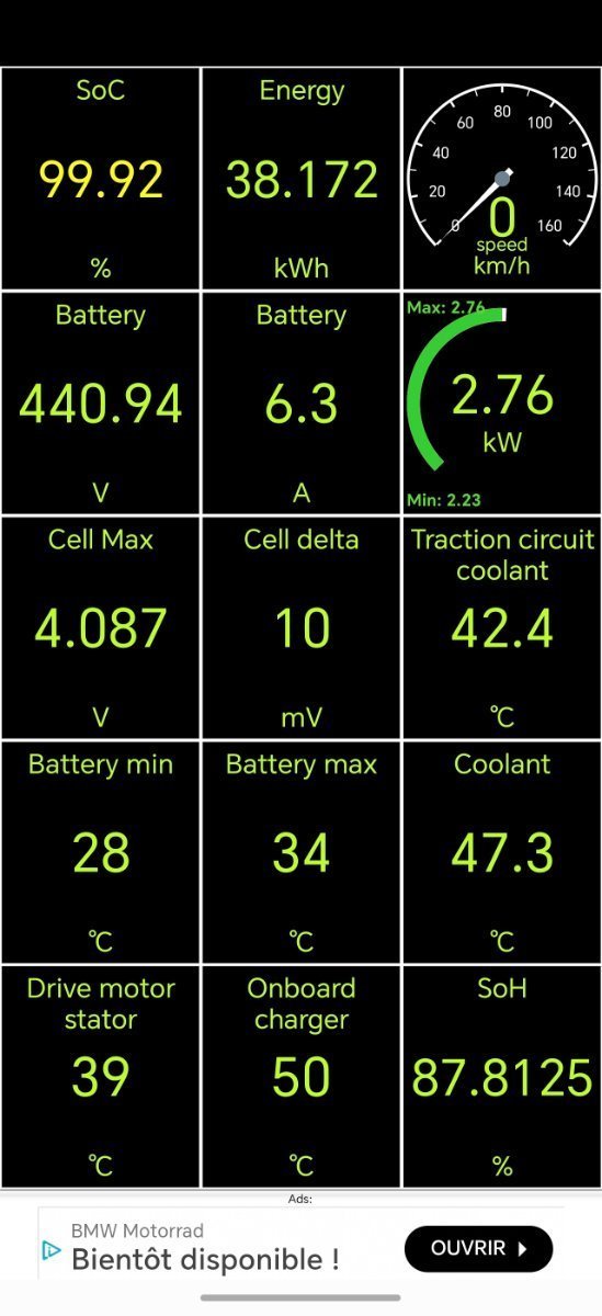 Bonjour à tous. Franchement le SOH fourni par Stellantis/Citroen est vraiment étrange. Ci-dessous le SOH de Juillet 2025 à 87,8125% avec un SOC chargé à 99,92% et avec le SOC recalculé pour 100%, cela donne 38,202 kwh de dispo. Et voici en Avril 2026 le SOH à 85,5% avec un SOC chargé à 98,92% et avec le SOC recalculé pour 100%, cela donne 38,446 kwh de dispo. j'ai donc un SOH plus bas de 2% et un peu plus de kwh de dispo?? Franchement, je n'y compris pas grand chose, c'est un peu magique leur truc. Dans la pratique, ma voiture va toujours aussi loin donc je n'ai pas à me plaindre mais vu que le SOH est censé nous indiquer l'état de la voiture, notamment dans le cadre d'achat d'une occasion, ça a l'air d'être des chiffres qui ont chacun leur sauce. Je compte emmener la voiture jusqu'à la casse ou le changement de batterie mais bon.... -