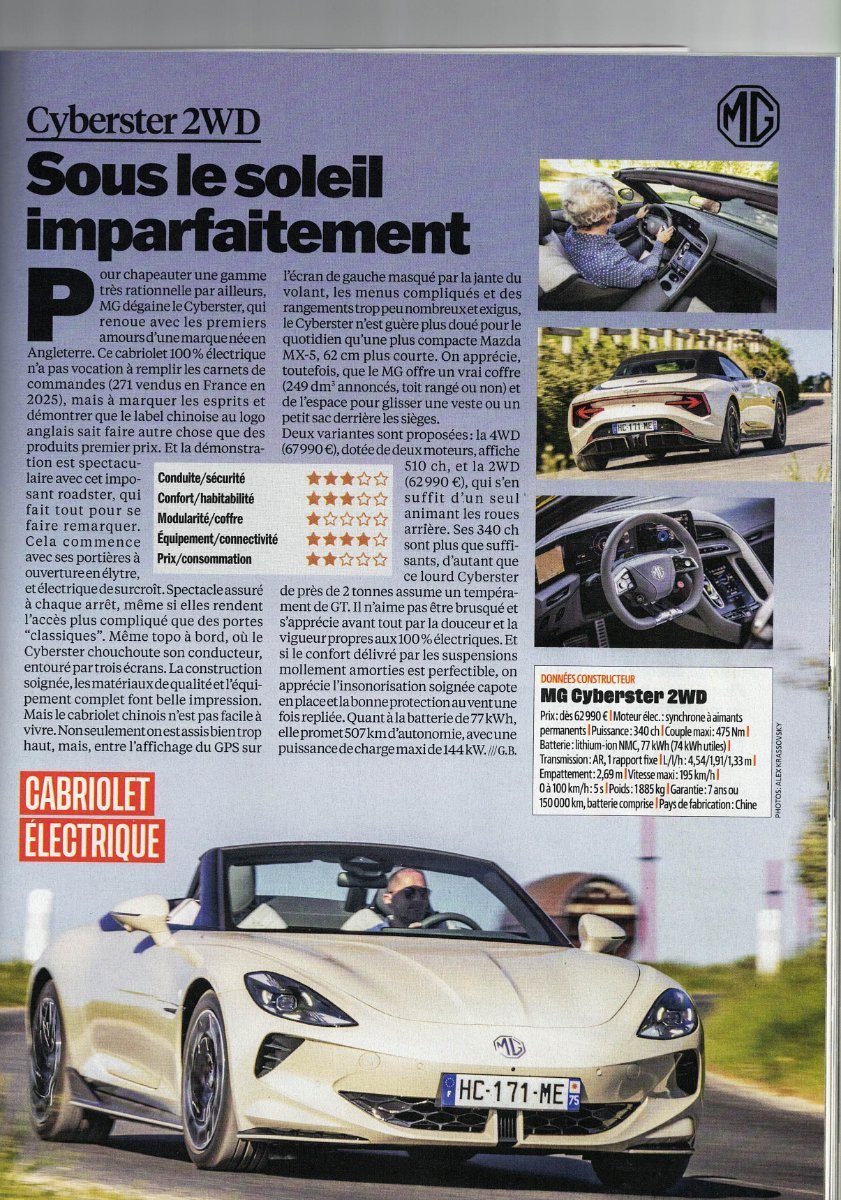 Bertbert a répondu à un sujet de Elektrelion dans MG 4