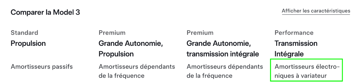 Donc 3 Model 3 avec 3 types d'amortisseurs différents, merci pour la capture écran très claire