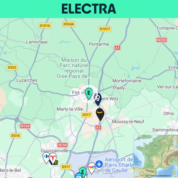 Ouverture d'une station Electra à Survilliers (Grand Frais). 6x 300kW CCS Comme d'habitude, retrouvez le lien vers ma carte : https://tinyurl.com/StationsVE Toute l'actu des stations de recharge sur le groupe FB : https://tinyurl.com/GroupeFacebookVE -