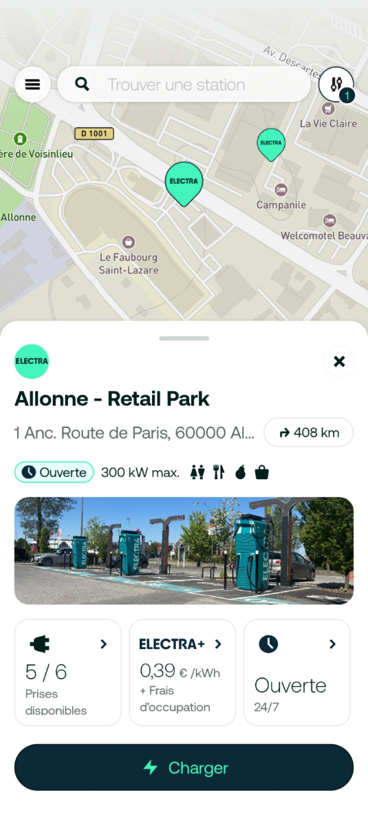 Ouverture d'une station Electra à Allonne (Retail Park). 6x 300kW CCS Comme d'habitude, retrouvez le lien vers ma carte : https://tinyurl.com/StationsVE Toute l'actu des stations de recharge sur le groupe FB : https://tinyurl.com/GroupeFacebookVE -