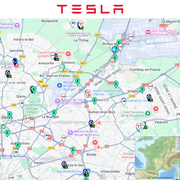 Construction d'une station Tesla à Aulnay-sous-Bois (Centre Commercial O'Parinor). Info et photo relayée par Yoann en VE Comme d'habitude, retrouvez le lien vers ma carte : https://tinyurl.com/StationsVE Toute l'actu des stations de recharge sur le groupe FB : https://tinyurl.com/GroupeFacebookVE